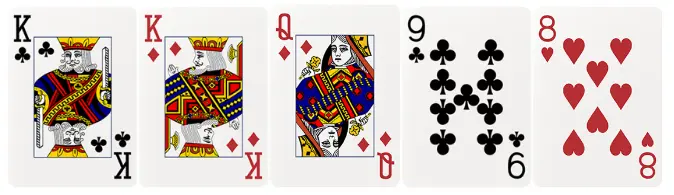 兩組不同數字的對子,例如 9♣ 9♦ 5♠ 5♥ K♠。先比大對子,再比小對子,最後比單張。