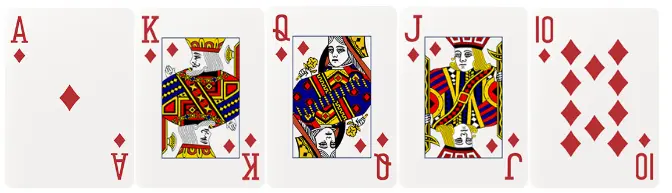 由同一花色的 A、K、Q、J、10 組成,為所有牌型中最頂級的存在,無人能敵。